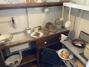 Dad did mention a few things that I can now relate to much more clearly. I have seen the small officer wardroom where he lived and slept and sat to pen his letters to my mum. He taught me to cook the most delicious scrambled eggs and porridge “…because we had only the tiniest galley and it was the only scran we could really muster. The trick is to cook them slowly and stir all the time…”. I’ve seen the dark and airless engine room where the skipper, he and the crew hunkered down for a whole day on the Normandy beaches “…when the tide went out and left us stranded. We sat around the engines, at least that way we each had some armour to our backs.” The two heads, or toilets, shared by the 10 crew and up to 50 soldiers as they crossed the Channel in heavy seas. The vulnerable wheelhouse, where he commanded the ship during his watches; he spoke of the occasion when, dog tired after three days non-stop combat, he fell asleep halfway back to Portsmouth in the
